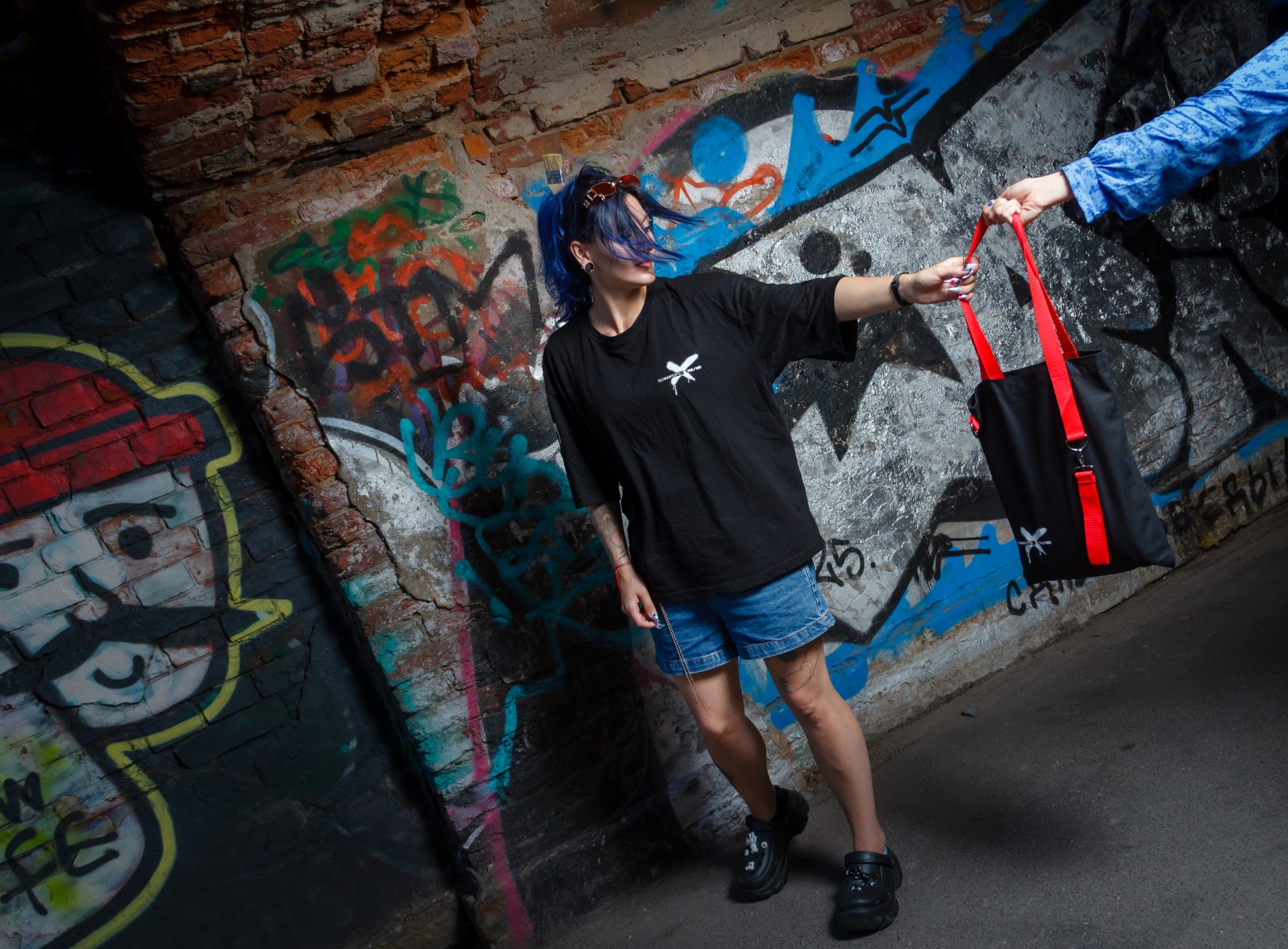 Для коллекции выбрали трендовую джинсовую куртку оверсайз О2 в двух цветах, лаконичную черную унисекс футболку Base Space — также в свободном стиле — в комплекте с креативным шопером, дополненном контрастными элементами. А для прямого попадания во вкусы широкой аудитории было создано два разных дизайна: минималистичное и сдержанное оформление футболки и шопера оттенило яркое и сложное нанесение на джинсовке. У двух цветовых вариантов куртки тоже слегка отличаются детали персонализации, но с сохранением единого стиля.