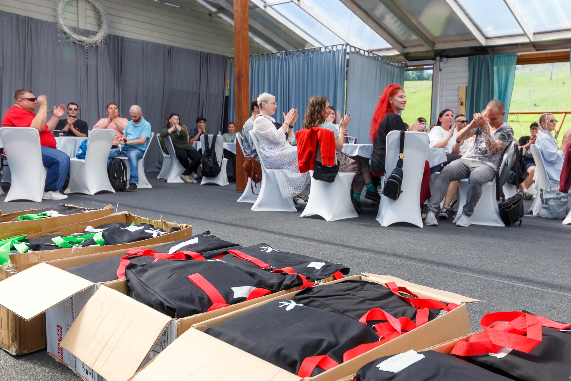 Финал юбилейного корпоратива однозначно запомнился больше, чем торт. Вместо традиционной выдачи мерча в простой упаковке был организован эффектный перформанс: показ мод с сотрудниками в роли моделей и главных звезд вечера. Так у всех состоялась небольшая минута славы — с торжественным вручением именной вещи под аплодисменты коллег. Это был настоящий ритуал признания, где каждый почувствовал себя важной частью дружной команды. Так юбилейный мерч стал не просто подарком, а символом единства.