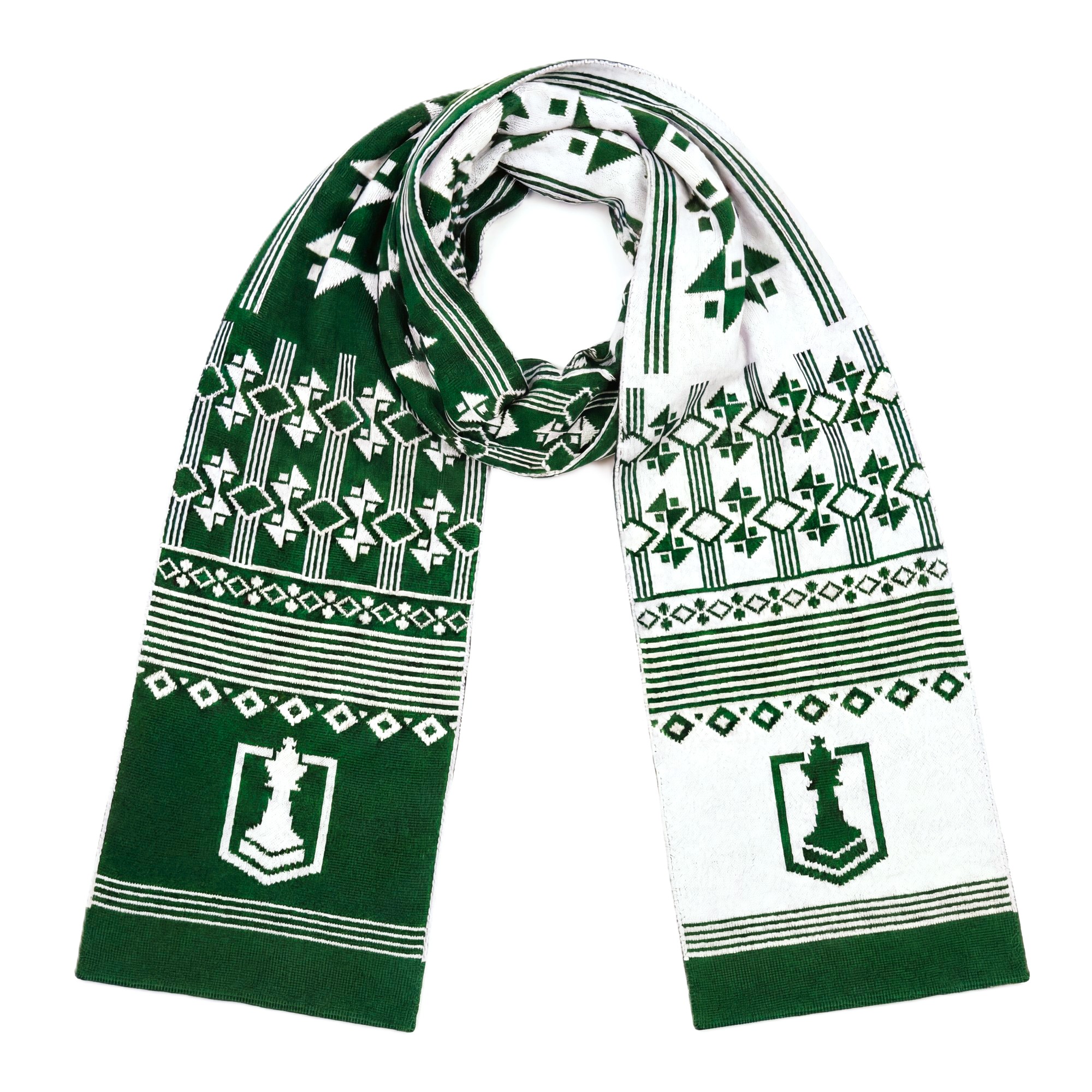 - Шарфы Tricksy Light из акрила также в двух цветовых версиях с геометричным жаккардовым узором и шахматной символикой.