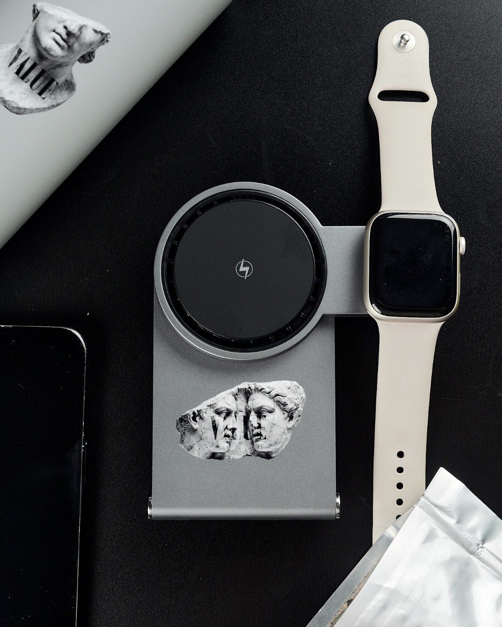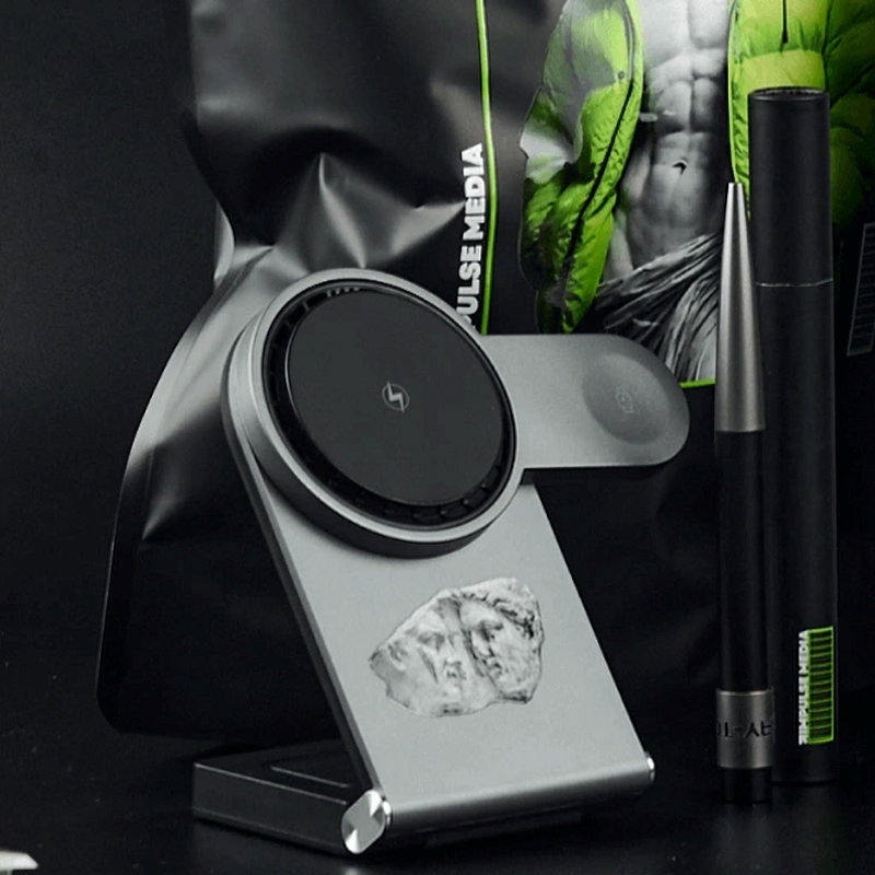 Технологическое ядро набора — это складная зарядная станция transForm и кружка с подогревом и беспроводной зарядкой dualBase бренда Indivo. Совместимость со смартфонами по Qi, дополнительные зоны под часы и наушники, компактная форма и лаконичное нанесение превращают стильный гаджет transForm в постоянно используемый бренд-носитель на рабочем столе.