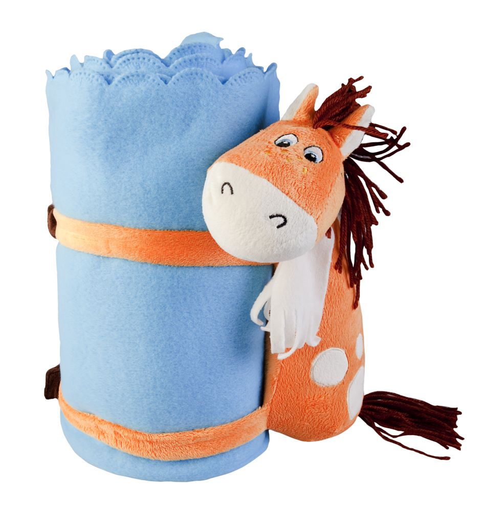Мягким и теплым подарком может быть просто лошадка с пледом.